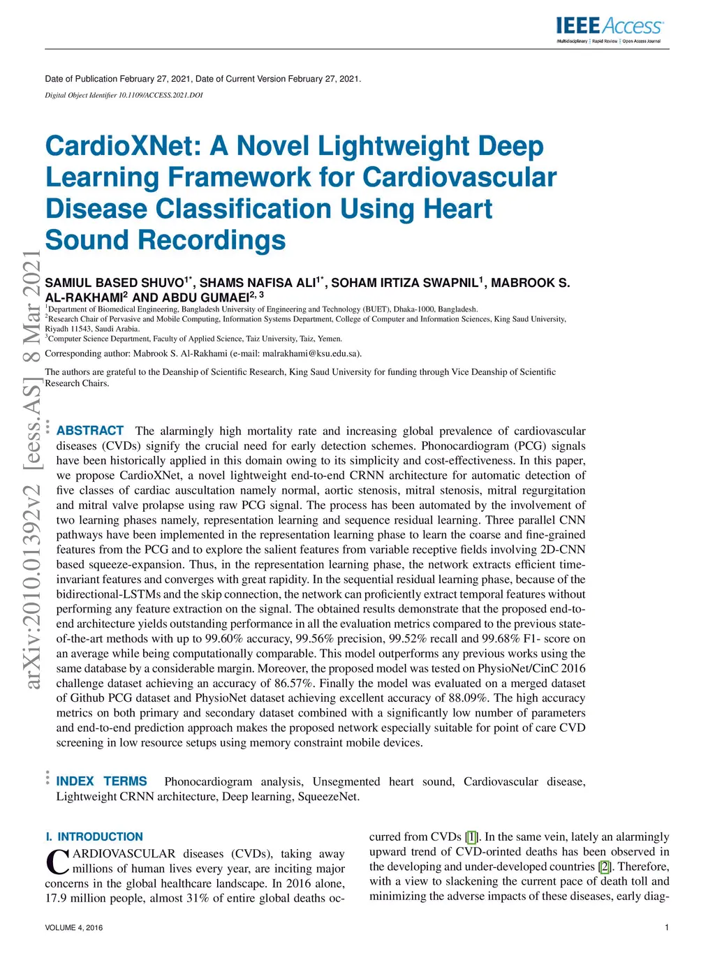 CardioXNet: A Novel Lightweight Deep Learning Framework for