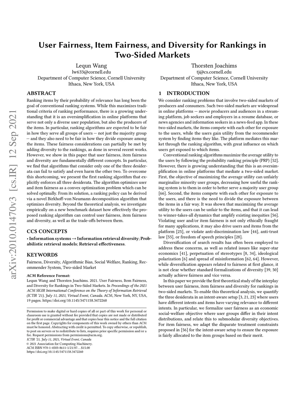User Fairness, Item Fairness, and Diversity for Rankings in Two-Sided