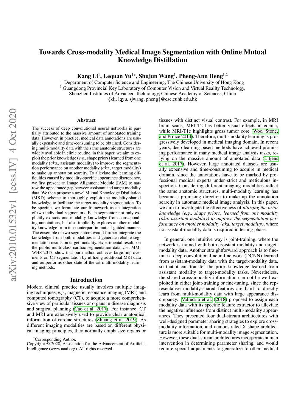 Towards Cross-modality Medical Image Segmentation with Online Mutual