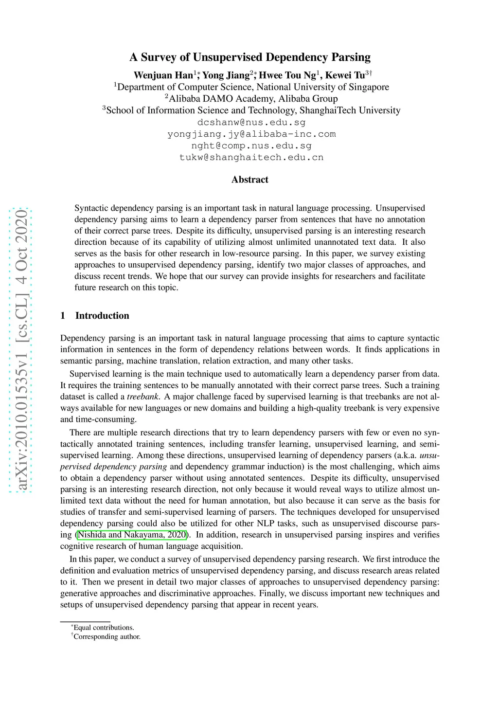 A Survey of Unsupervised Dependency Parsing