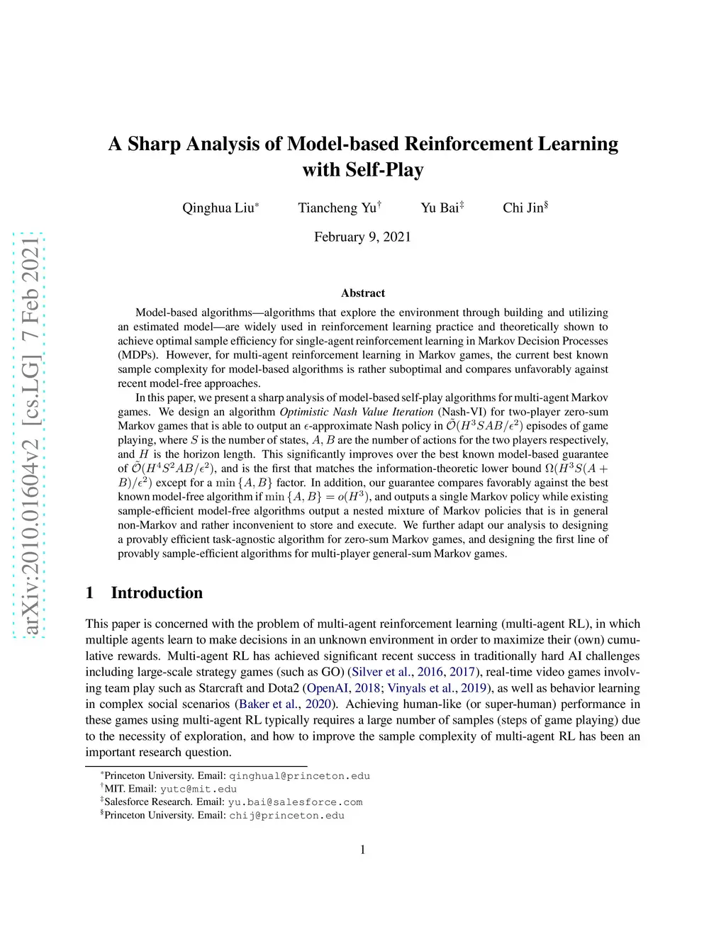 A Sharp Analysis of Model-based Reinforcement Learning with Self-Play