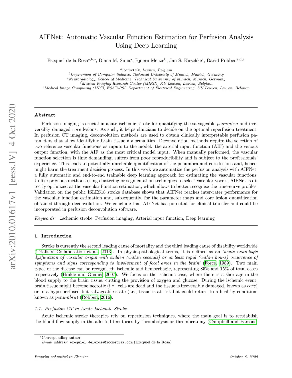 AIFNet: Automatic Vascular Function Estimation for Perfusion Analysis