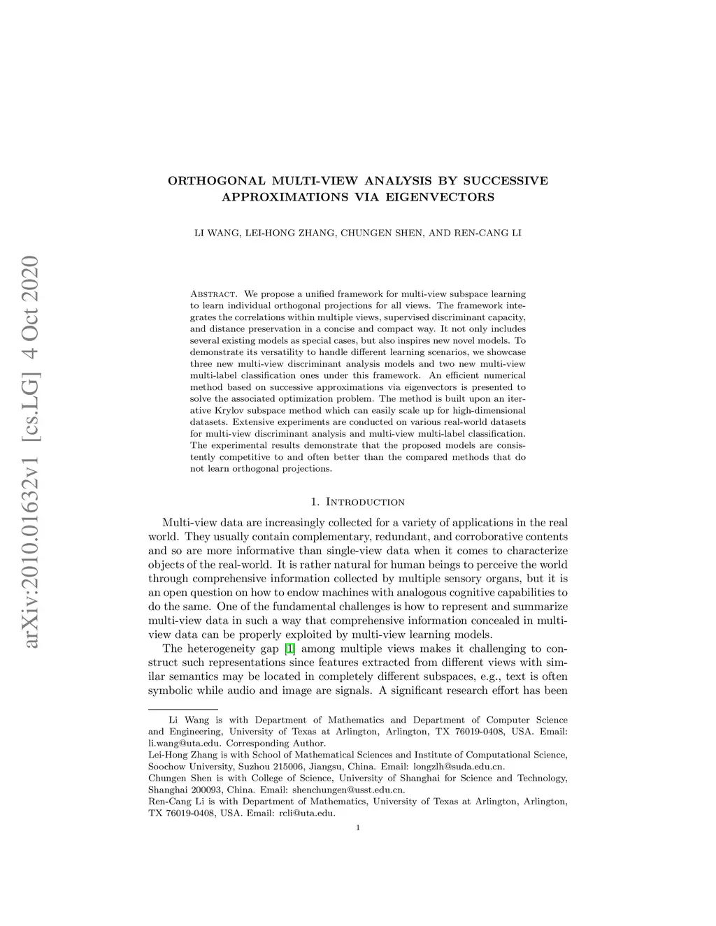 Orthogonal Multi-view Analysis by Successive Approximations via