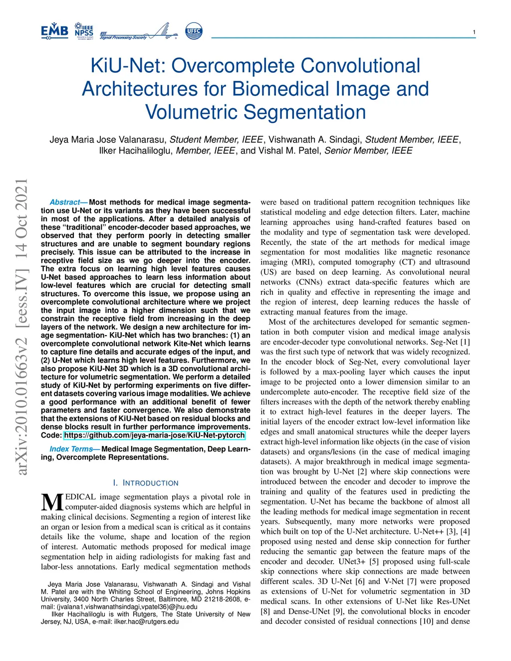 KiU-Net: Overcomplete Convolutional Architectures for Biomedical Image