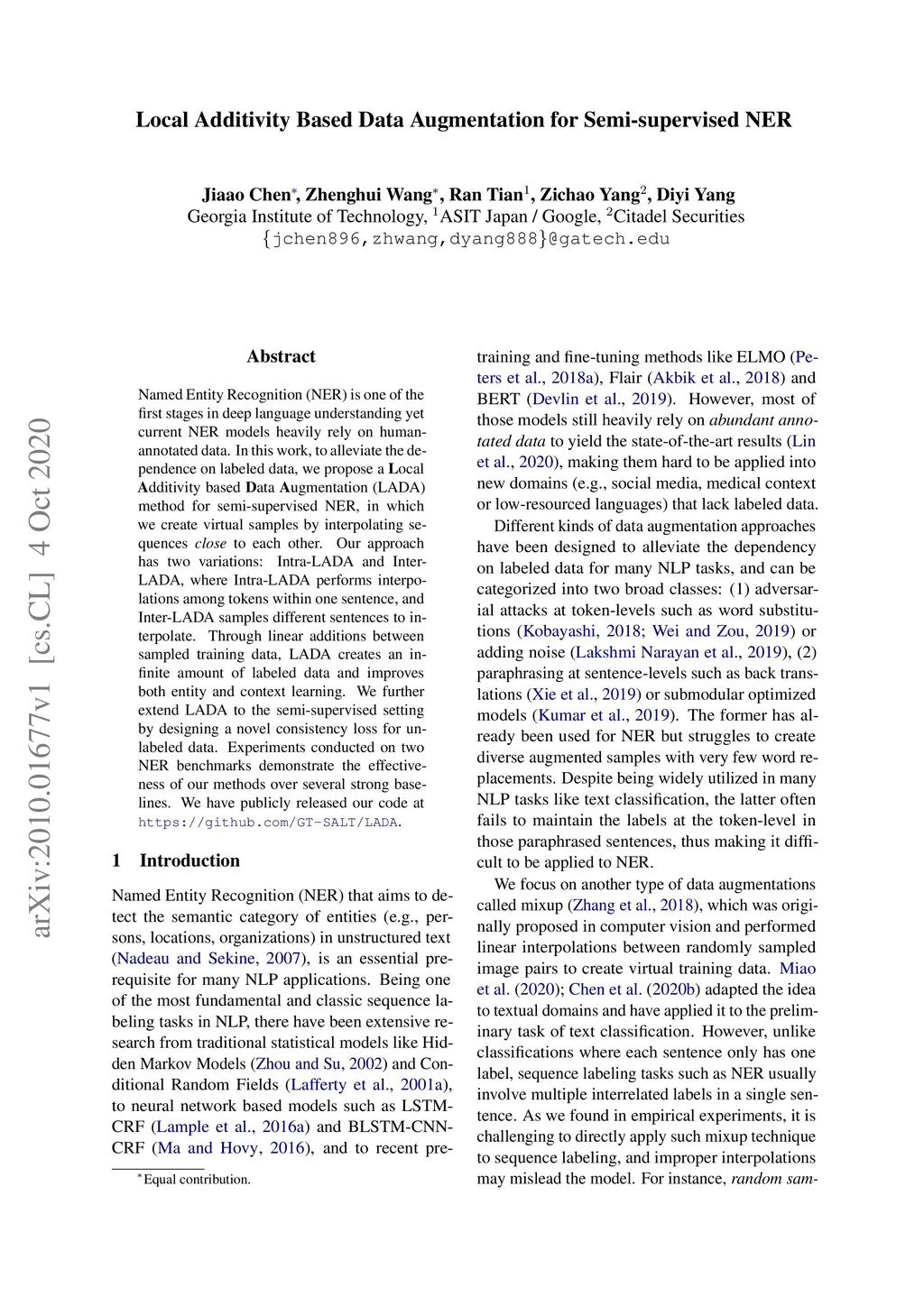 Local Additivity Based Data Augmentation for Semi-supervised NER
