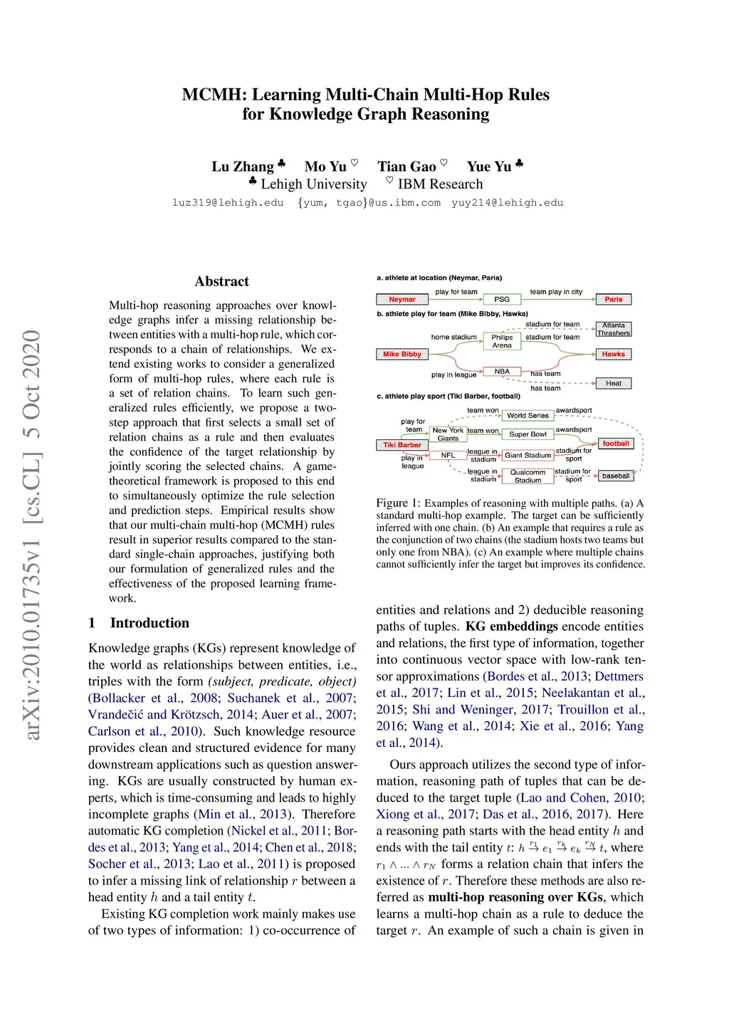 MCMH: Learning Multi-Chain Multi-Hop Rules for Knowledge Graph Reasoning