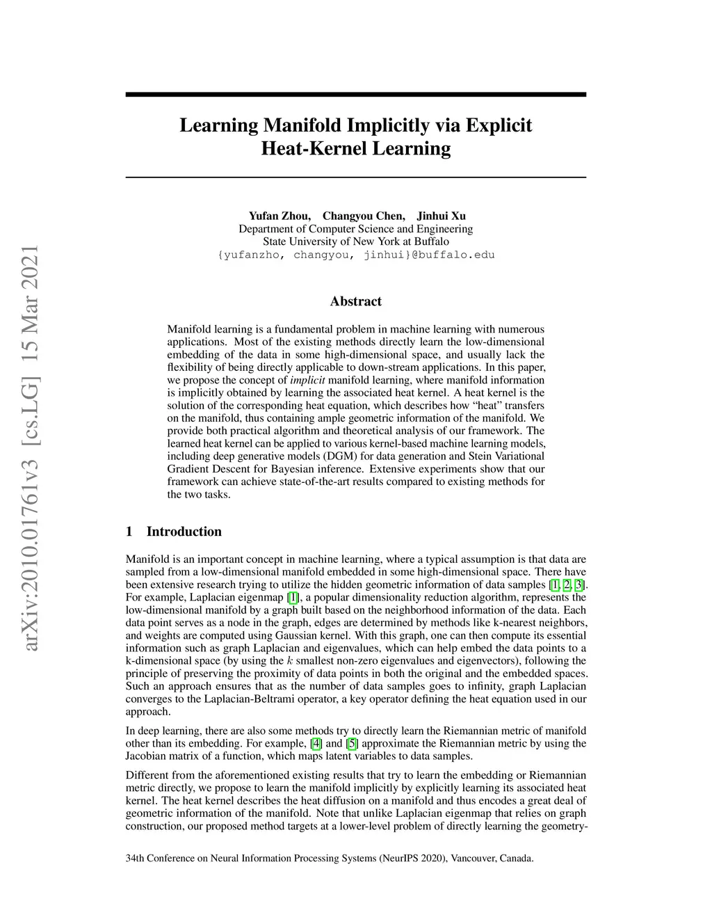 Learning Manifold Implicitly via Explicit Heat-Kernel Learning