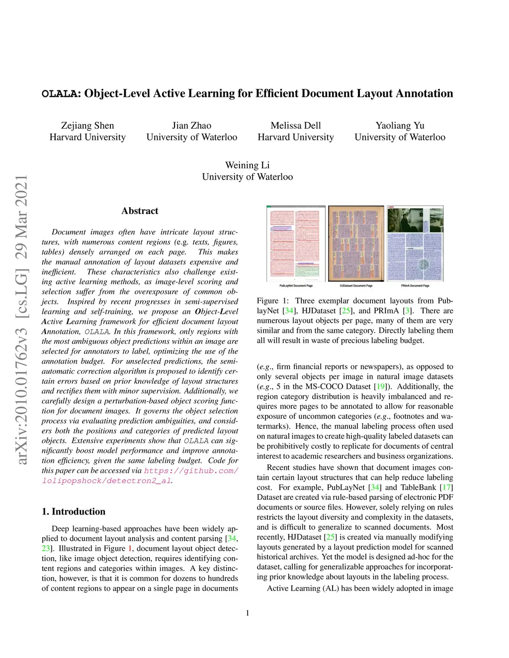 OLALA: Object-Level Active Learning for Efficient Document Layout