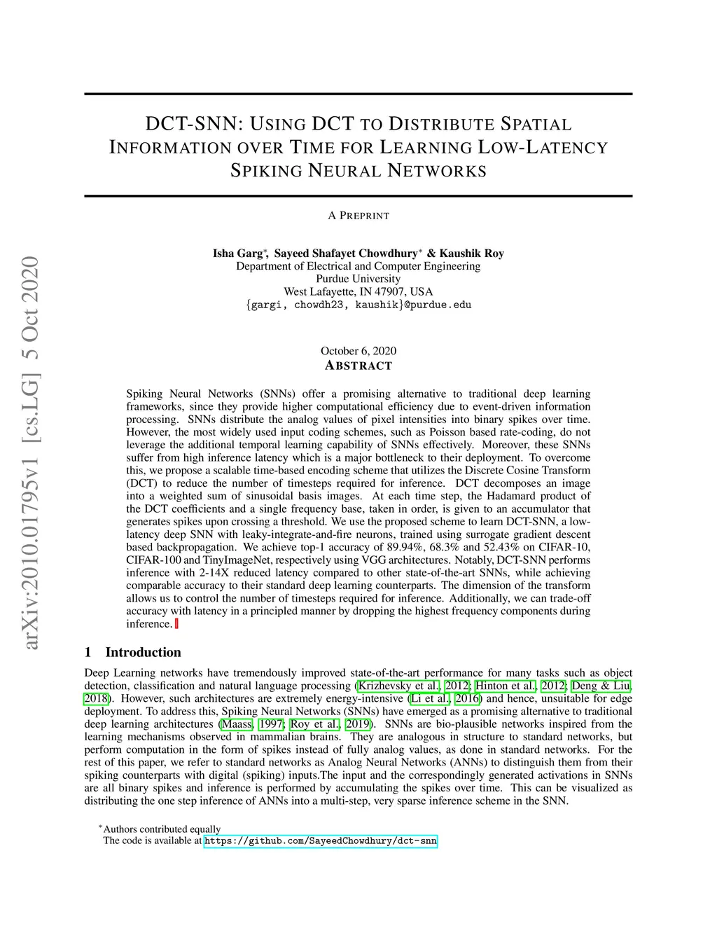 DCT-SNN: Using DCT to Distribute Spatial Information over Time for