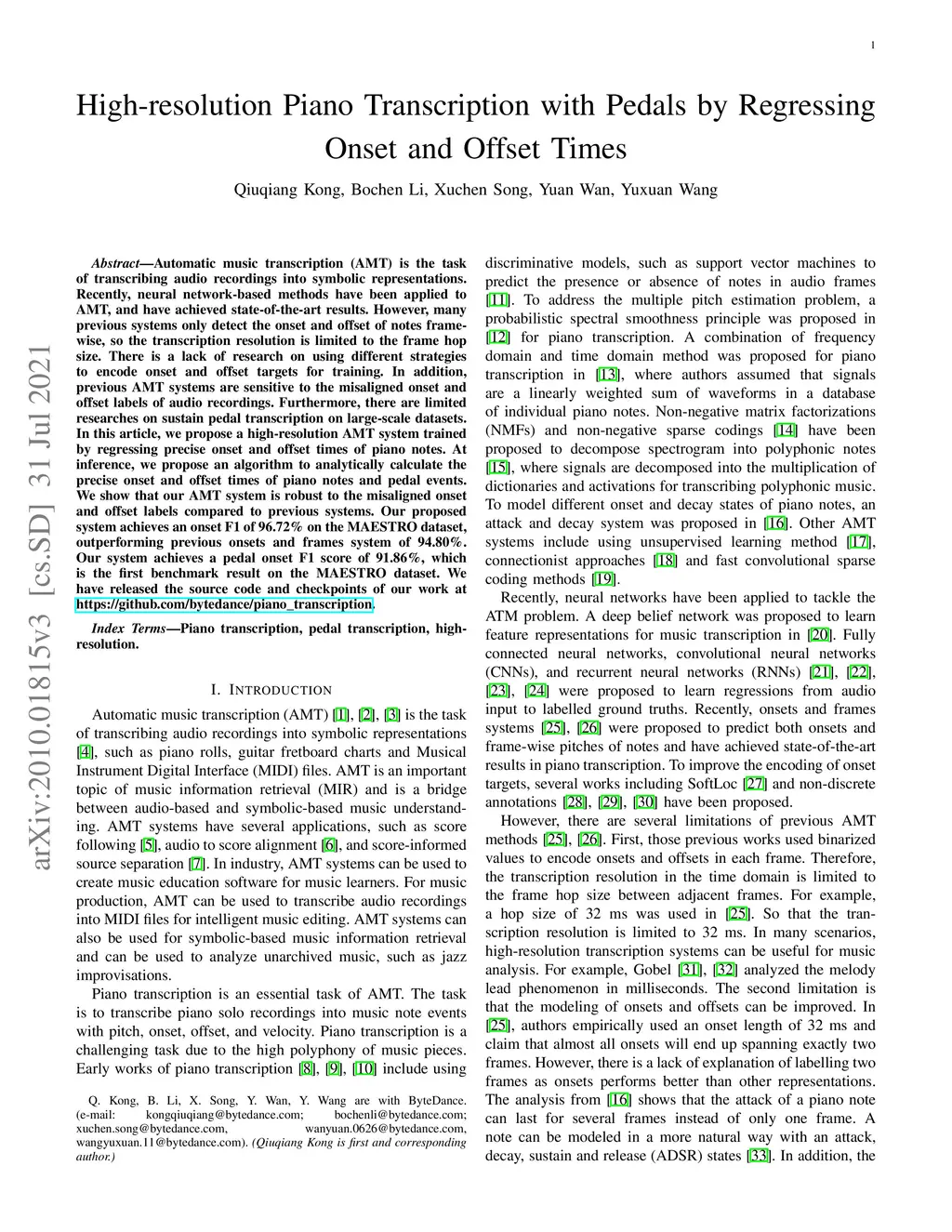 High-resolution Piano Transcription with Pedals by Regressing Onsets and