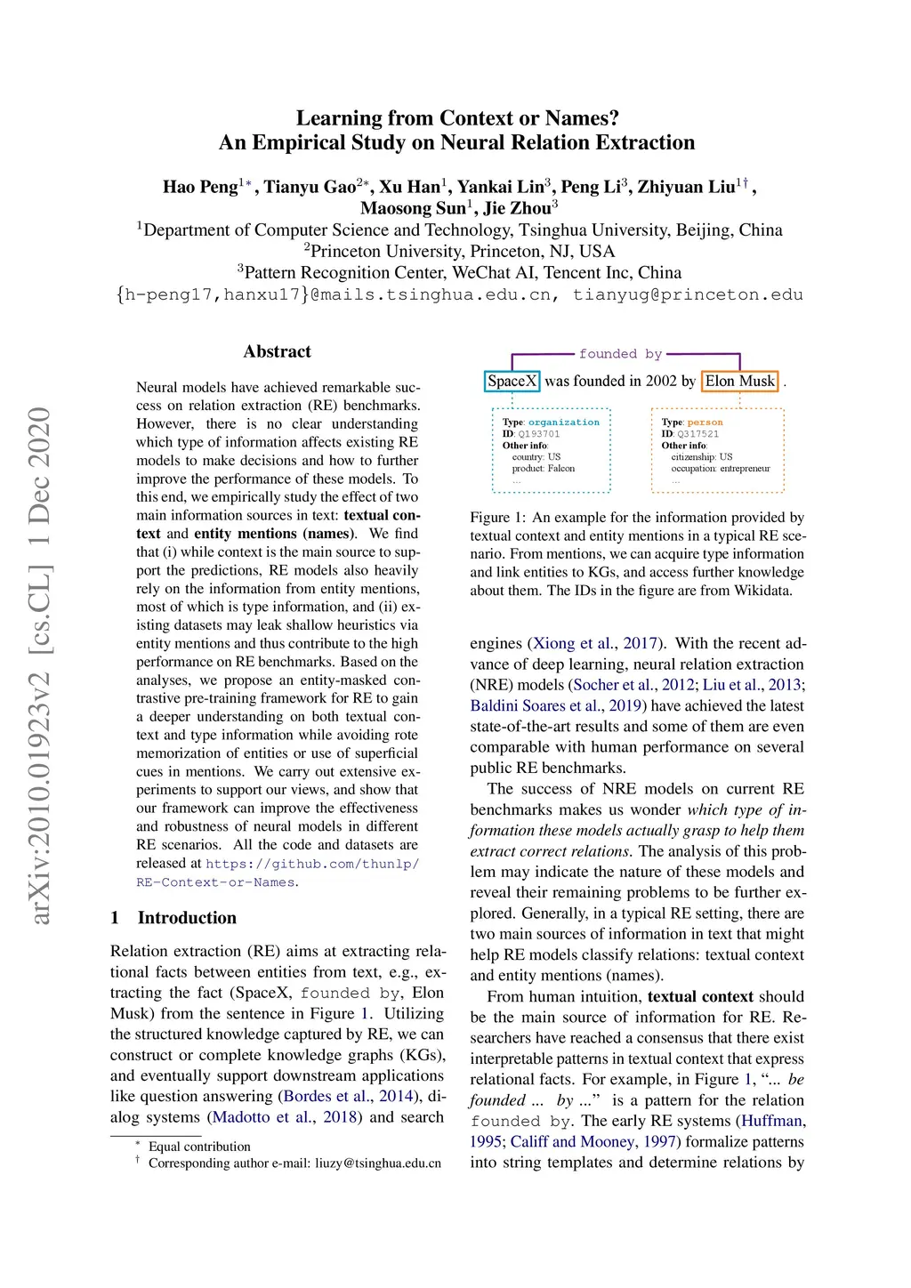 Learning from Context or Names? An Empirical Study on Neural Relation