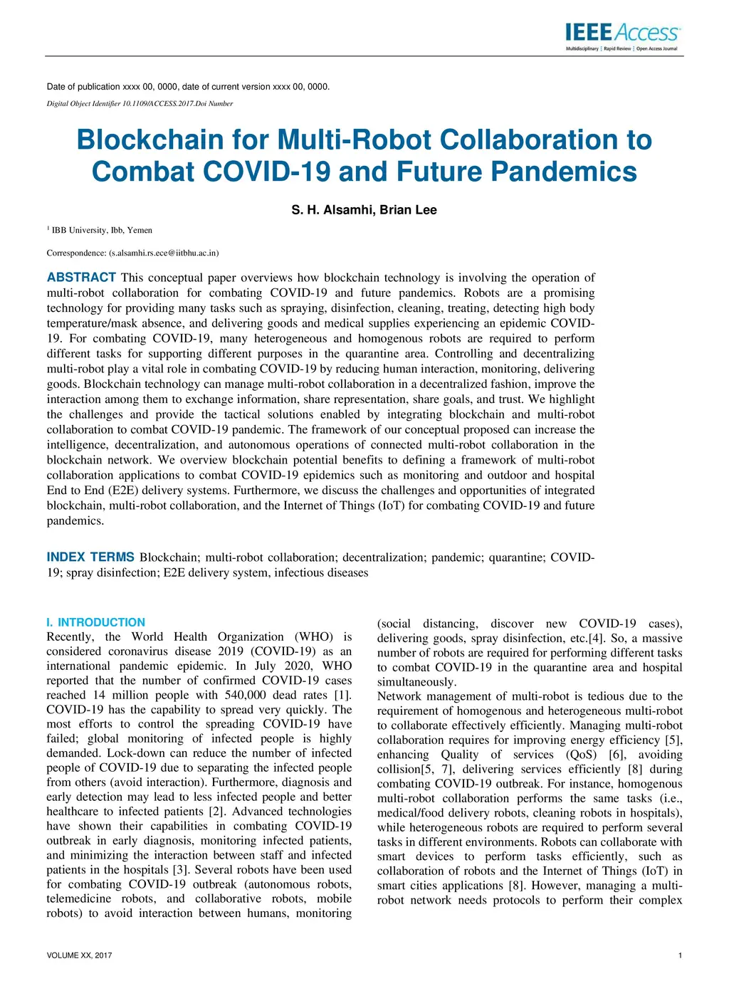 Blockchain for Multi-Robot Collaboration to Combat COVID-19 and Future