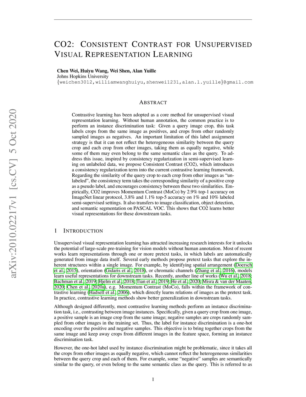 CO2: Consistent Contrast for Unsupervised Visual Representation Learning