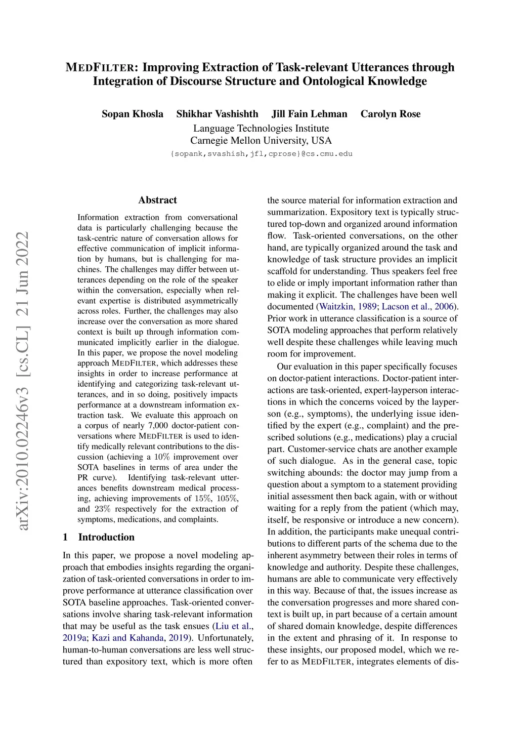 MedFilter: Improving Extraction of Task-relevant Utterances from