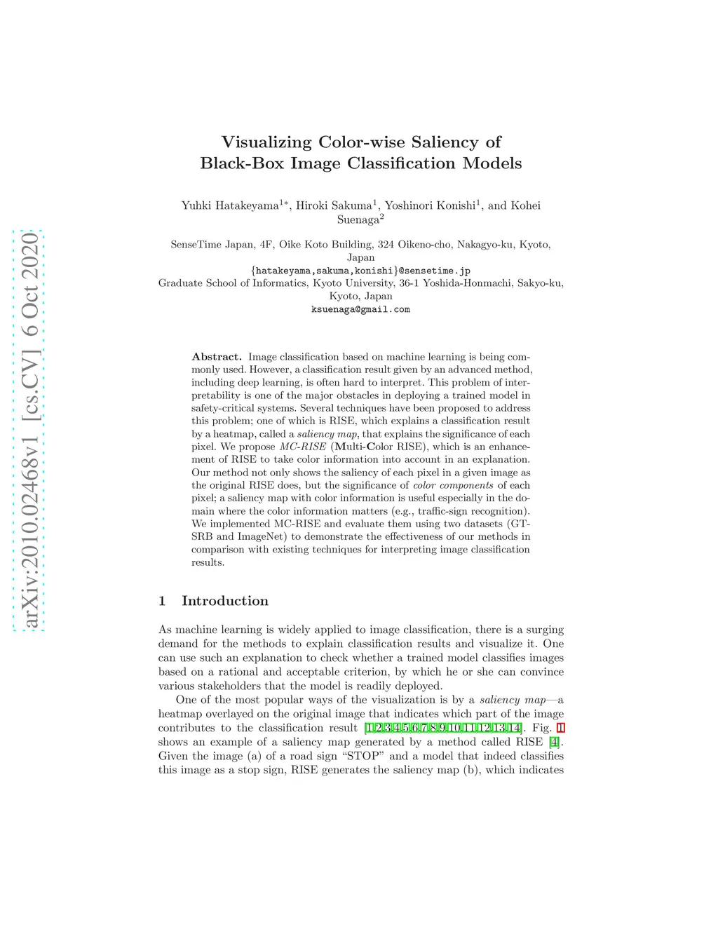 Image classification based on machine learning is being commonly used. However, a classification result given by an advanced method, including deep learning, is often hard to interpret. This problem of interpretability is one of the major obstacles in deploying a trained model in safety-critical systems. Several techniques have been proposed to address this problem; one of which is RISE, which explains a classification result by a heatmap, called a saliency map, which explains the significance of each pixel. We propose MC-RISE (Multi-Color RISE), which is an enhancement of RISE to take color information into account in an explanation. Our method not only shows the saliency of each pixel in a given image as the original RISE does, but the significance of color components of each pixel; a saliency map with color information is useful especially in the domain where the color information matters (e.g., traffic-sign recognition). We implemented MC-RISE and evaluate them using two datasets (GTSRB and ImageNet) to demonstrate the effectiveness of our methods in comparison with existing techniques for interpreting image classification results.