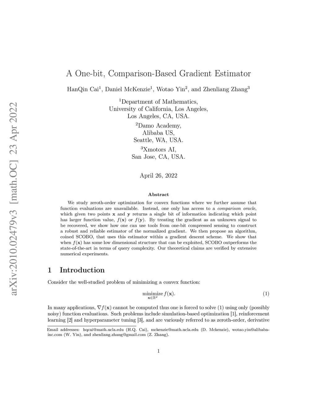 A One-bit, Comparison-Based Gradient Estimator