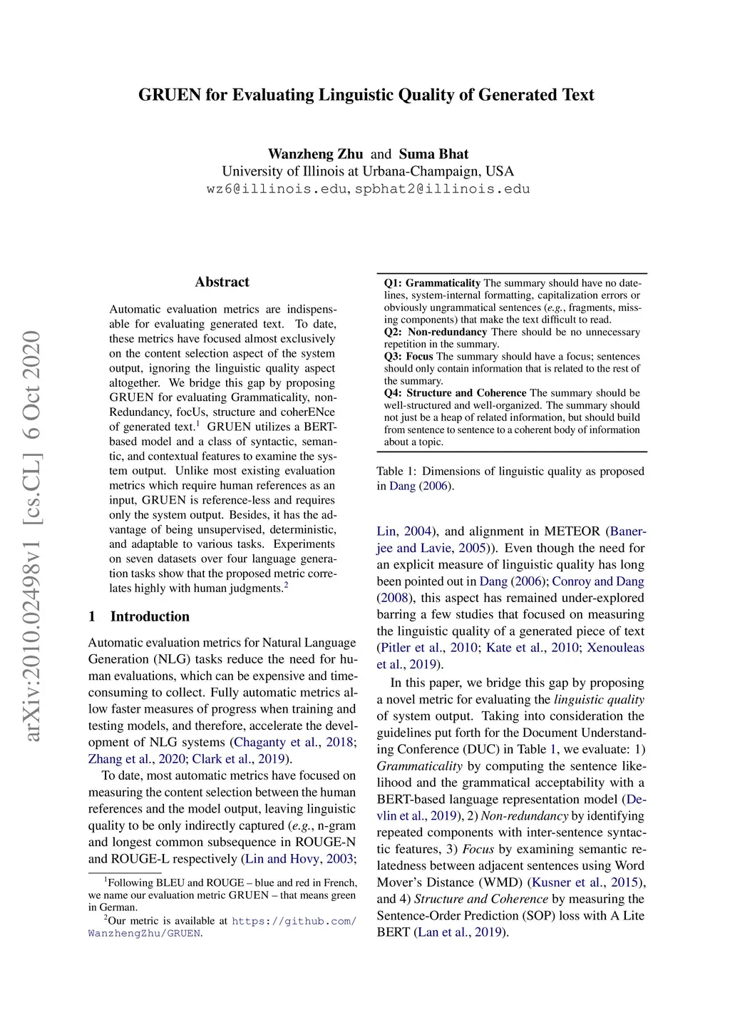 GRUEN for Evaluating Linguistic Quality of Generated Text