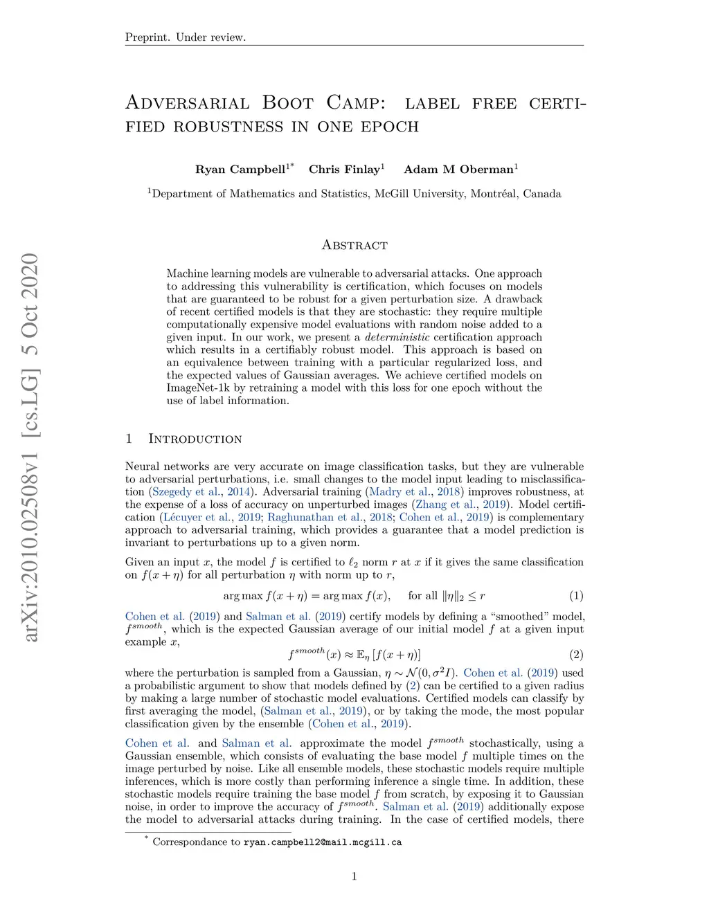 Adversarial Boot Camp: label free certified robustness in one epoch