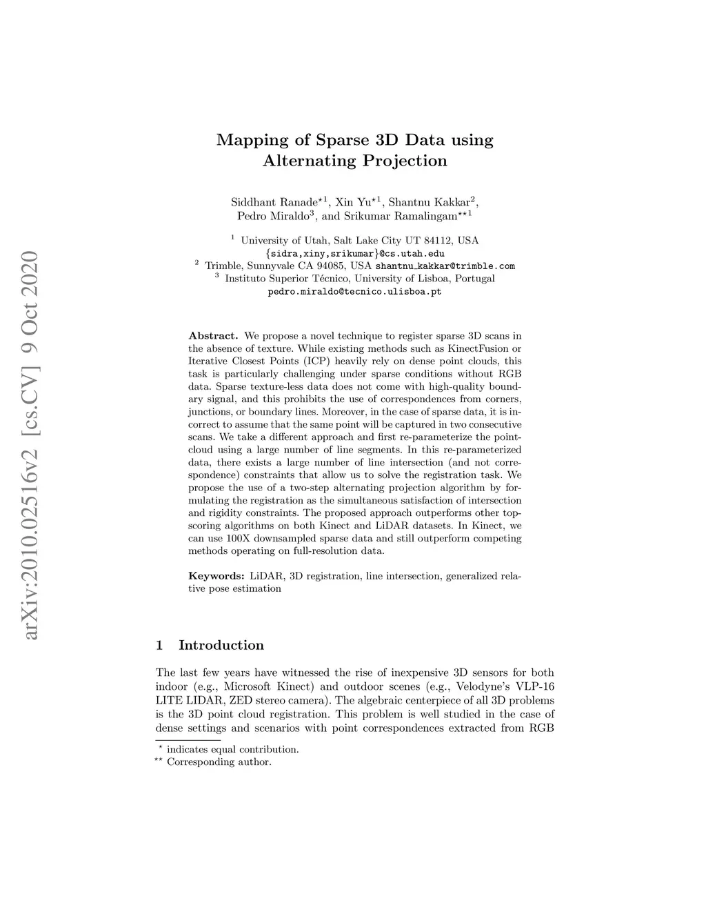 Mapping of Sparse 3D Data using Alternating Projection
