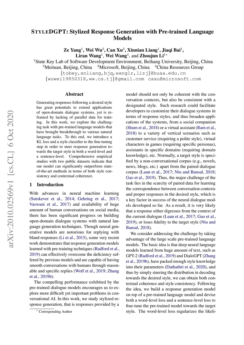 StyleDGPT: Stylized Response Generation with Pre-trained Language Models