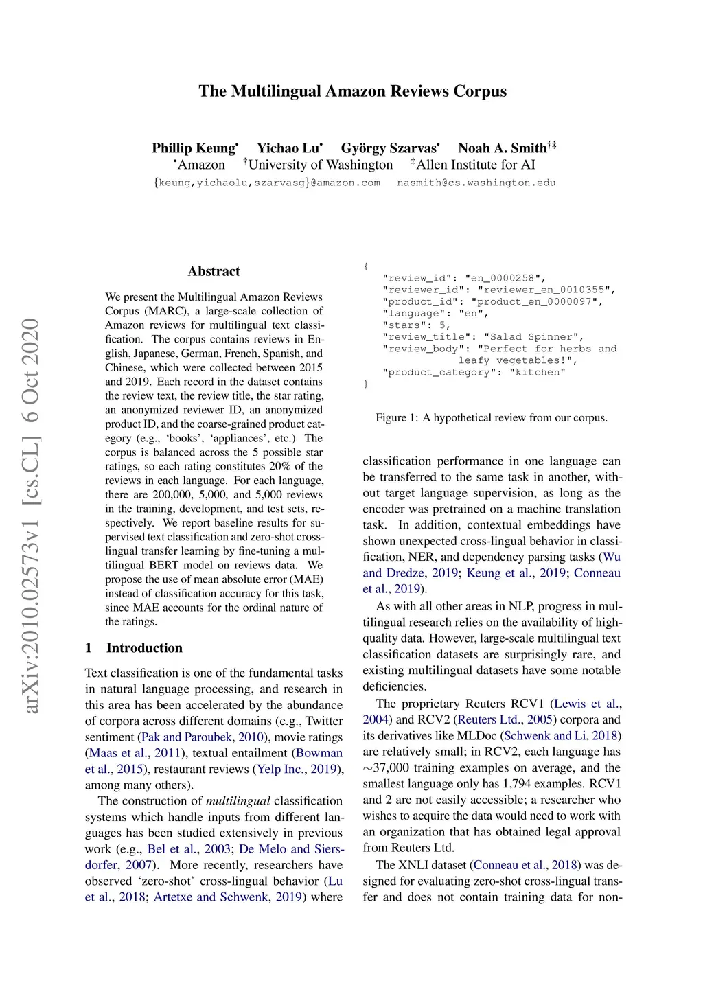 The Multilingual Amazon Reviews Corpus
