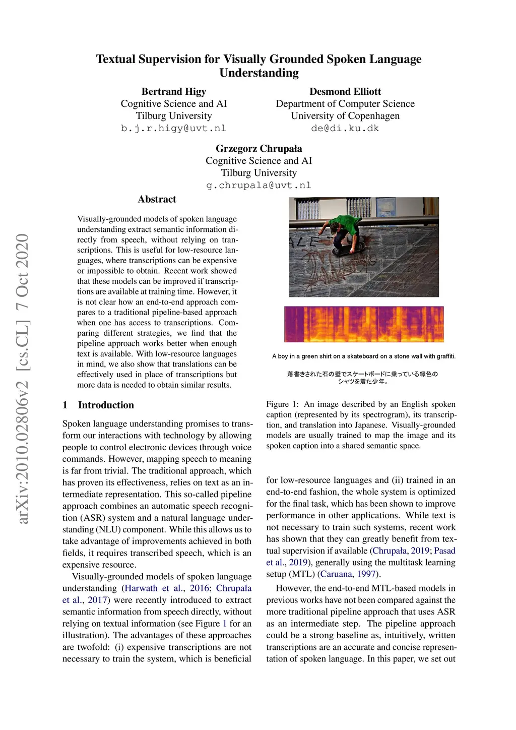Textual Supervision for Visually Grounded Spoken Language Understanding