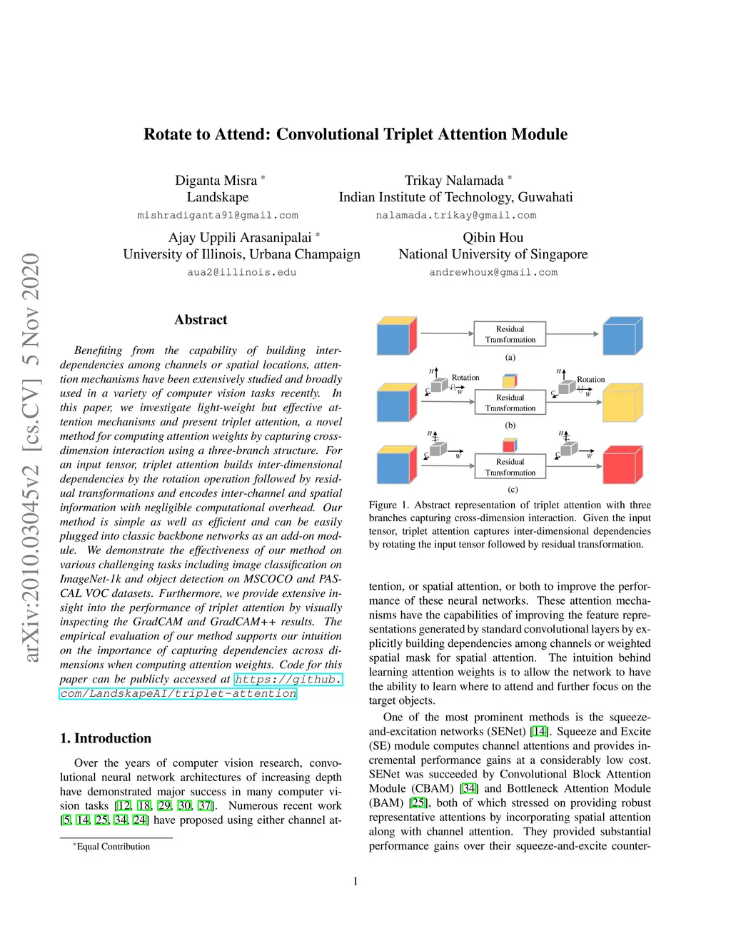 Benefiting from the capability of building inter-dependencies among channels or spatial locations, attention mechanisms have been extensively studied and broadly used in a variety of computer vision tasks recently. In this paper, we investigate light-weight but effective attention mechanisms and present triplet attention, a novel method for computing attention weights by capturing cross-dimension interaction using a three-branch structure. For an input tensor, triplet attention builds inter-dimensional dependencies by the rotation operation followed by residual transformations and encodes inter-channel and spatial information with negligible computational overhead. Our method is simple as well as efficient and can be easily plugged into classic backbone networks as an add-on module. We demonstrate the effectiveness of our method on various challenging tasks including image classification on ImageNet-1k and object detection on MSCOCO and PASCAL VOC datasets. Furthermore, we provide extensive in-sight into the performance of triplet attention by visually inspecting the GradCAM and GradCAM++ results. The empirical evaluation of our method supports our intuition on the importance of capturing dependencies across dimensions when computing attention weights. Code for this paper can be publicly accessed at https://github.com/LandskapeAI/triplet-attention