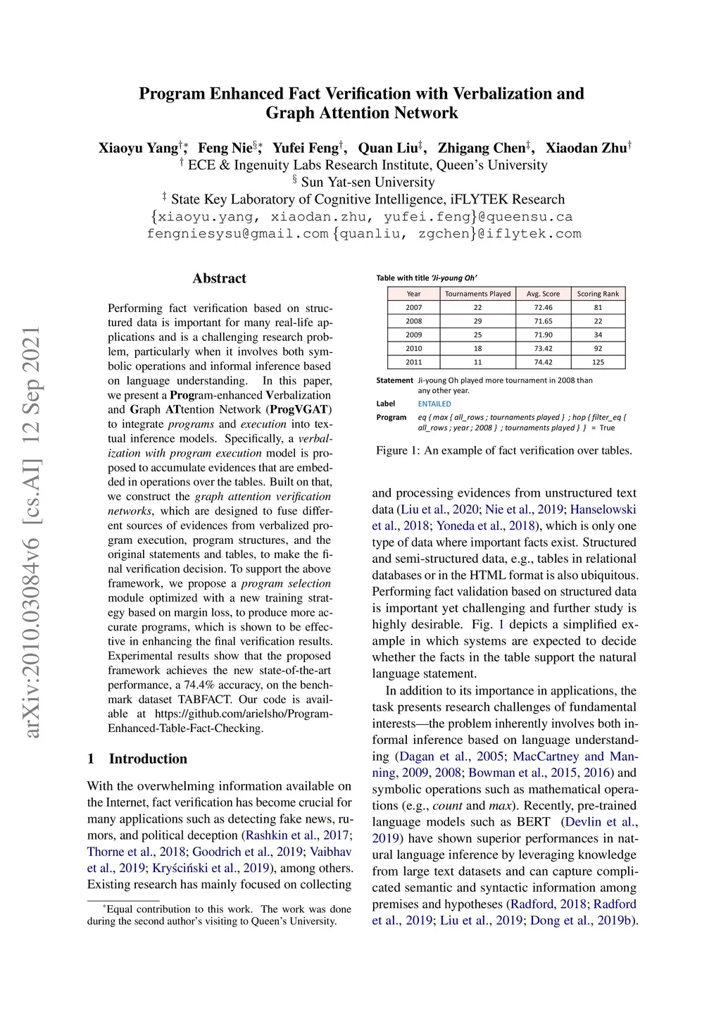 Performing fact verification based on structured data is important for many real-life applications and is a challenging research problem, particularly when it involves both symbolic operations and informal inference based on language understanding. In this paper, we present a Program-enhanced Verbalization and Graph Attention Network (ProgVGAT) to integrate programs and execution into textual inference models. Specifically, a verbalization with program execution model is proposed to accumulate evidences that are embedded in operations over the tables. Built on that, we construct the graph attention verification networks, which are designed to fuse different sources of evidences from verbalized program execution, program structures, and the original statements and tables, to make the final verification decision. To support the above framework, we propose a program selection module optimized with a new training strategy based on margin loss, to produce more accurate programs, which is shown to be effective in enhancing the final verification results. Experimental results show that the proposed framework achieves the new state-of-the-art performance, a 74.4% accuracy, on the benchmark dataset TABFACT.