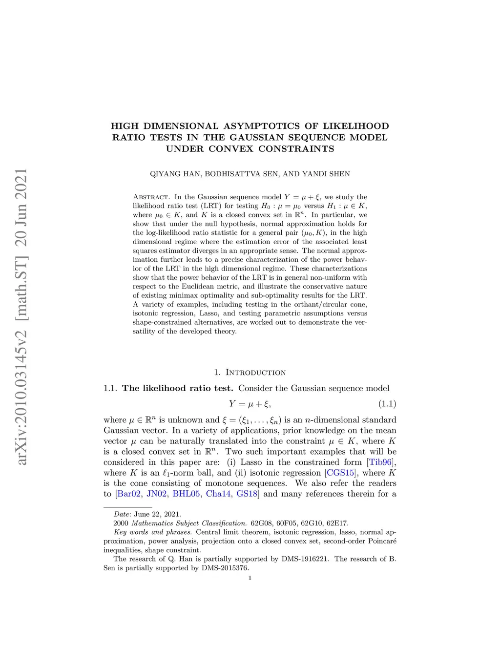 sequence model under convex constraints
