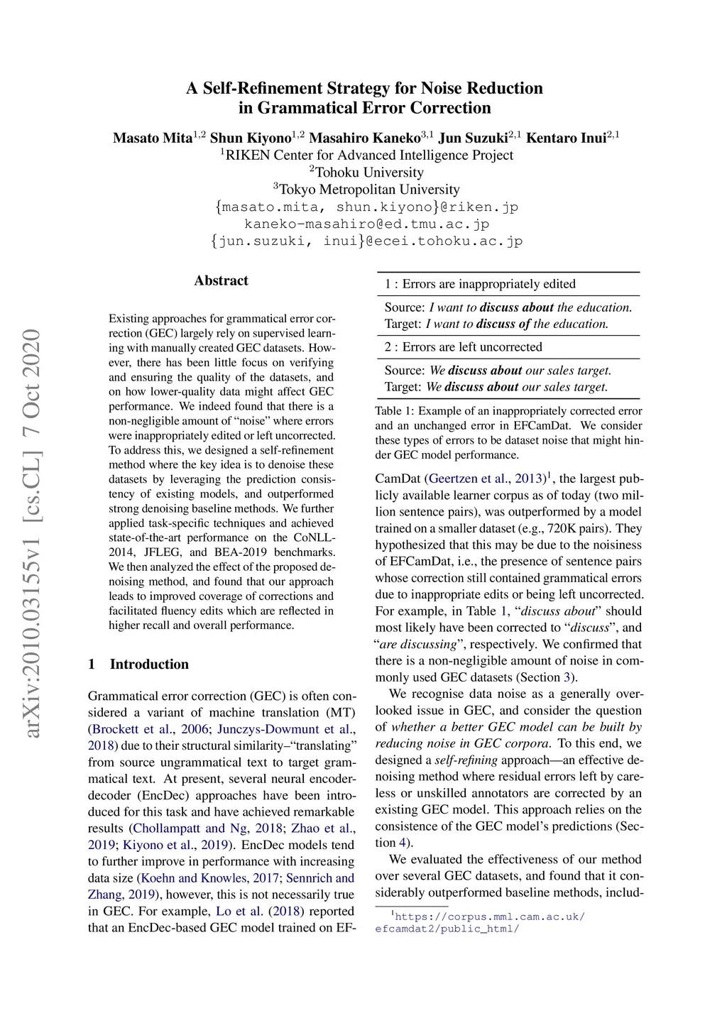A Self-Refinement Strategy for Noise Reduction in Grammatical Error