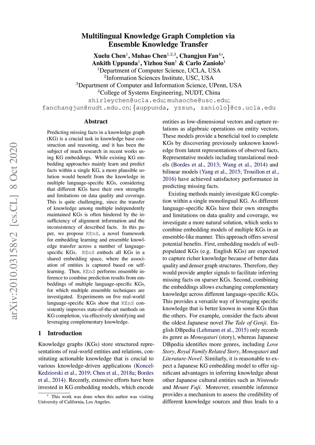 Multilingual Knowledge Graph Completion via Ensemble Knowledge Transfer
