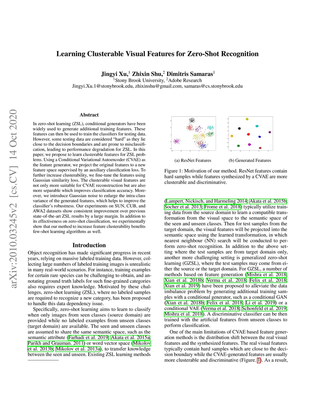 Learning Clusterable Visual Features for Zero-Shot Recognition