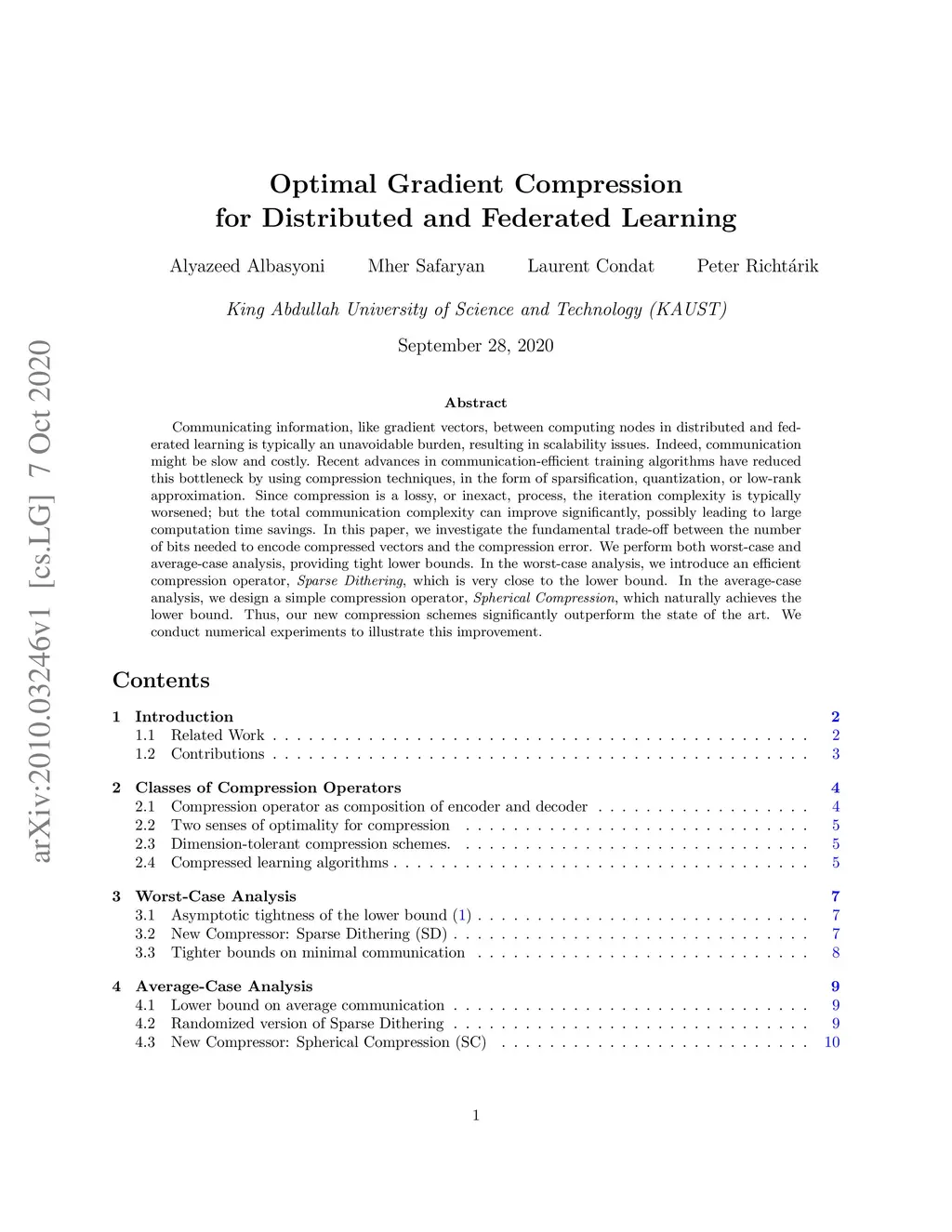 Communicating information, like gradient vectors, between computing nodes in distributed and federated learning is typically an unavoidable burden, resulting in scalability issues. Indeed, communication might be slow and costly. Recent advances in communication-efficient training algorithms have reduced this bottleneck by using compression techniques, in the form of sparsification, quantization, or low-rank approximation. Since compression is a lossy, or inexact, process, the iteration complexity is typically worsened; but the total communication complexity can improve significantly, possibly leading to large computation time savings. In this paper, we investigate the fundamental trade-off between the number of bits needed to encode compressed vectors and the compression error. We perform both worst-case and average-case analysis, providing tight lower bounds. In the worst-case analysis, we introduce an efficient compression operator, Sparse Dithering, which is very close to the lower bound. In the average-case analysis, we design a simple compression operator, Spherical Compression, which naturally achieves the lower bound. Thus, our new compression schemes significantly outperform the state of the art. We conduct numerical experiments to illustrate this improvement.
