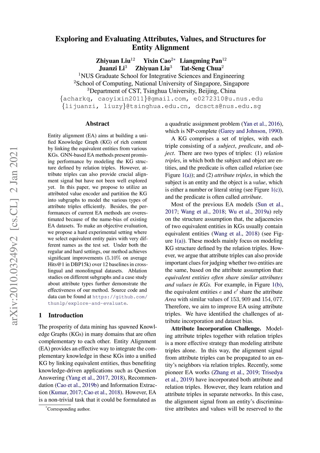 Exploring and Evaluating Attributes, Values, and Structures for Entity