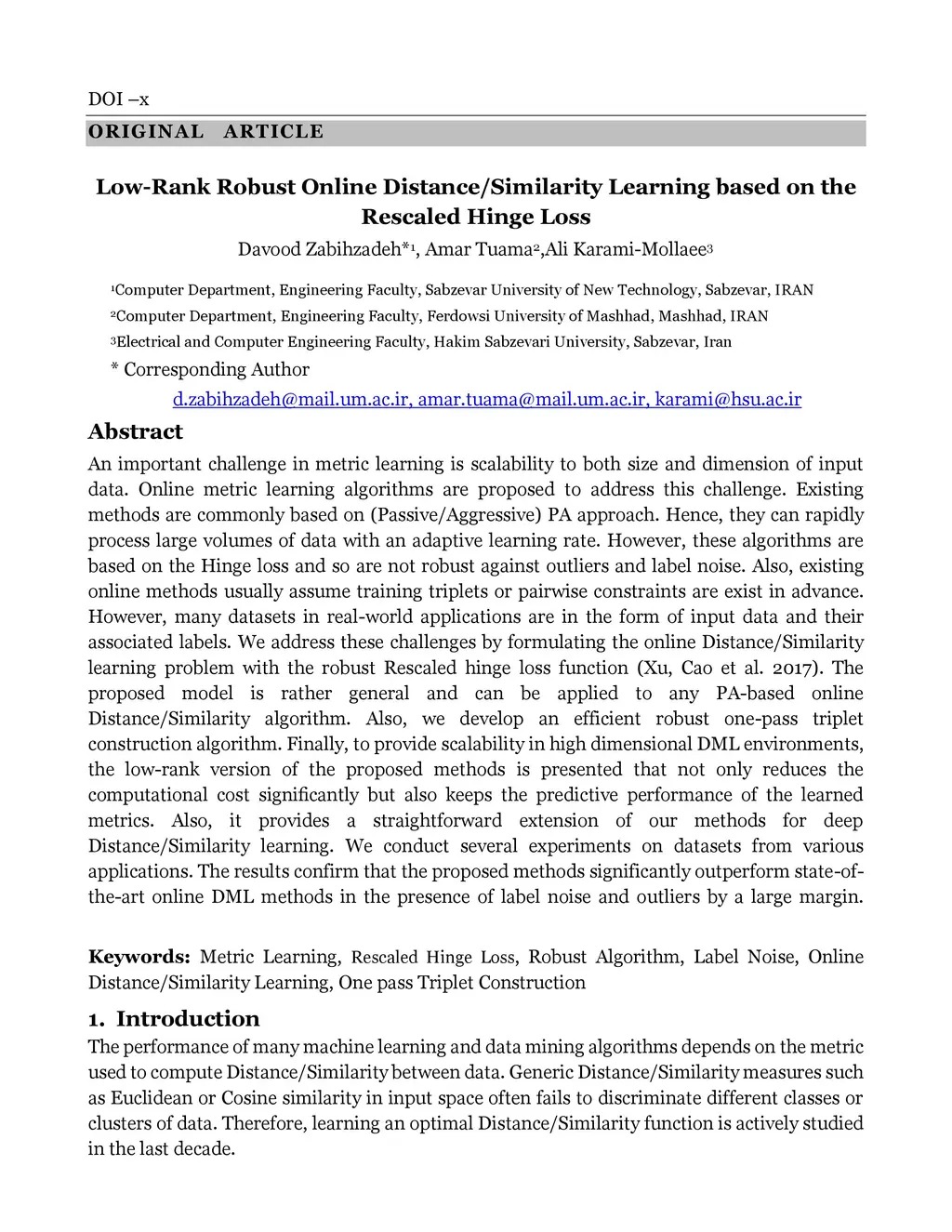 An important challenge in metric learning is scalability to both size and dimension of input data. Online metric learning algorithms are proposed to address this challenge. Existing methods are commonly based on (Passive Aggressive) PA approach. Hence, they can rapidly process large volumes of data with an adaptive learning rate. However, these algorithms are based on the Hinge loss and so are not robust against outliers and label noise. Also, existing online methods usually assume training triplets or pairwise constraints are exist in advance. However, many datasets in real-world applications are in the form of input data and their associated labels. We address these challenges by formulating the online Distance-Similarity learning problem with the robust Rescaled hinge loss function. The proposed model is rather general and can be applied to any PA-based online Distance-Similarity algorithm. Also, we develop an efficient robust one-pass triplet construction algorithm. Finally, to provide scalability in high dimensional DML environments, the low-rank version of the proposed methods is presented that not only reduces the computational cost significantly but also keeps the predictive performance of the learned metrics. Also, it provides a straightforward extension of our methods for deep Distance-Similarity learning. We conduct several experiments on datasets from various applications. The results confirm that the proposed methods significantly outperform state-of-the-art online DML methods in the presence of label noise and outliers by a large margin.
