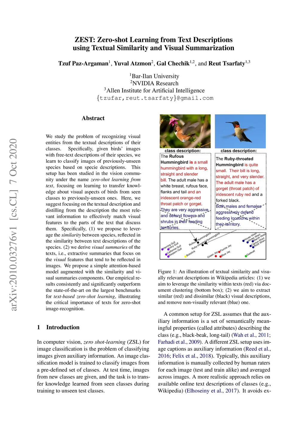 ZEST: Zero-shot Learning from Text Descriptions using Textual Similarity