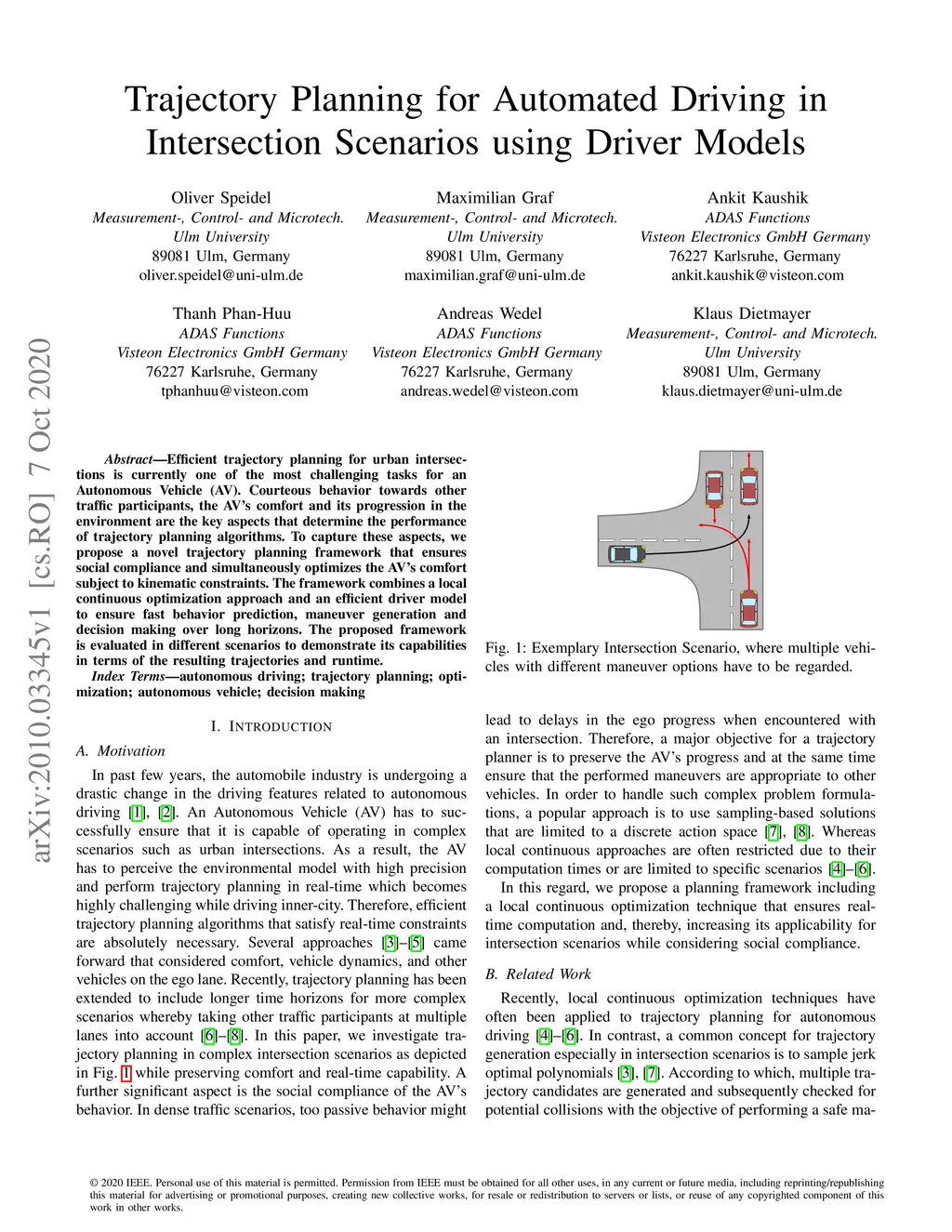 Efficient trajectory planning for urban intersections is currently one of the most challenging tasks for an Autonomous Vehicle (AV). Courteous behavior towards other traffic participants, the AV's comfort and its progression in the environment are the key aspects that determine the performance of trajectory planning algorithms. To capture these aspects, we propose a novel trajectory planning framework that ensures social compliance and simultaneously optimizes the AV's comfort subject to kinematic constraints. The framework combines a local continuous optimization approach and an efficient driver model to ensure fast behavior prediction, maneuver generation and decision making over long horizons. The proposed framework is evaluated in different scenarios to demonstrate its capabilities in terms of the resulting trajectories and runtime.
