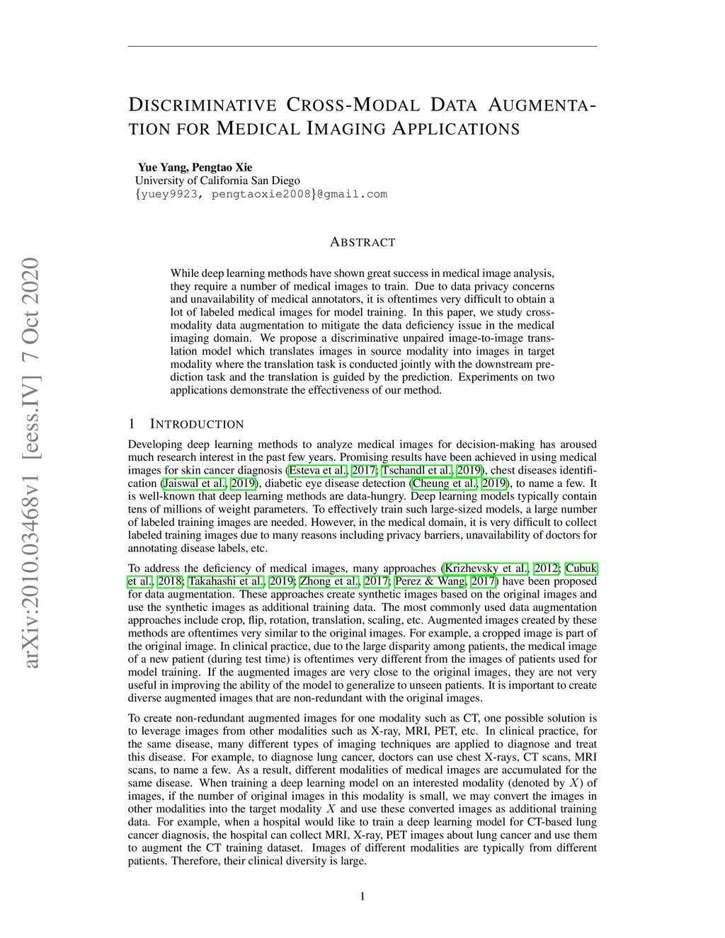 Discriminative Cross-Modal Data Augmentation for Medical Imaging