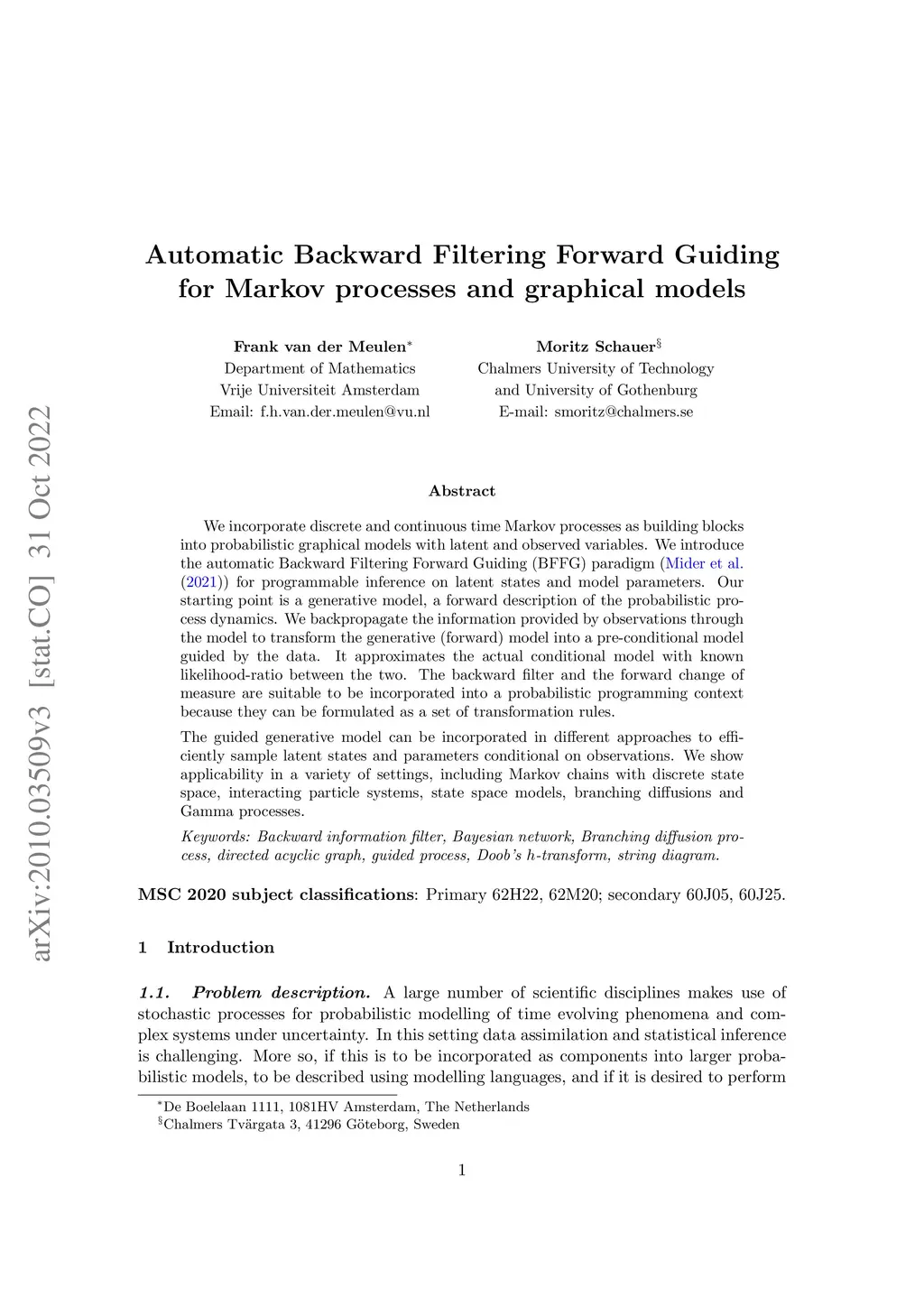 We incorporate discrete and continuous time Markov processes as building blocks into probabilistic graphical models. Observations are represented by leaf vertices. We introduce the automatic Backward Filtering Forward Guiding (BFFG) paradigm (Mider et. al, 2020) for programmable inference on latent states and model parameters. Our starting point is a generative model, a forward description of the probabilistic process dynamics. We backpropagate the information provided by observations through the model to transform the generative (forward) model into a pre-conditional model guided by the data. It approximates the actual conditional model with known likelihood-ratio between the two. The backward filter and the forward change of measure are suitable to be incorporated into a probabilistic programming context because they can be formulated as a set of transformation rules. The guided generative model can be incorporated in different approaches to efficiently sample latent states and parameters conditional on observations. We show applicability in a variety of settings, including Markov chains with discrete state space, interacting particle systems, state space models, branching diffusions and Gamma processes.