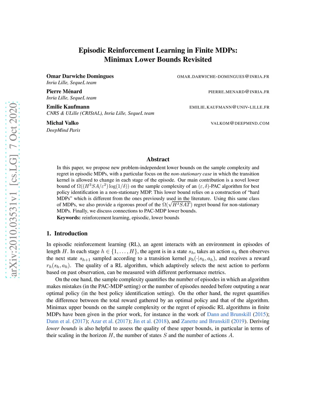 Episodic Reinforcement Learning in Finite MDPs: Minimax Lower Bounds