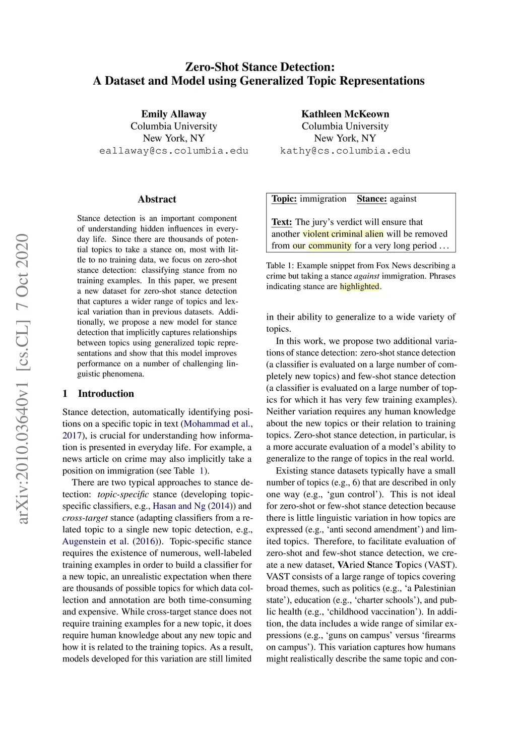 Zero-Shot Stance Detection: A Dataset and Model using Generalized Topic