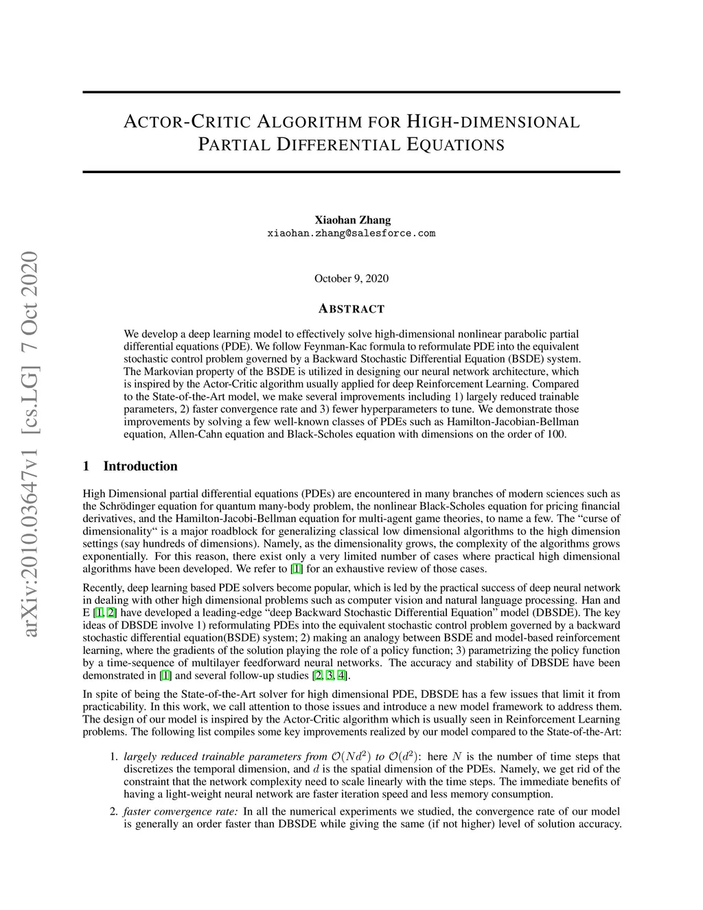 Actor-Critic Algorithm for High-dimensional Partial Differential