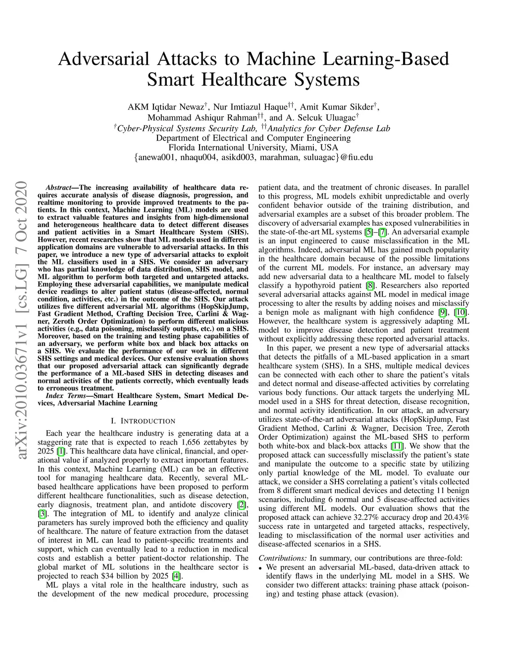 Adversarial Attacks to Machine Learning-Based Smart Healthcare Systems