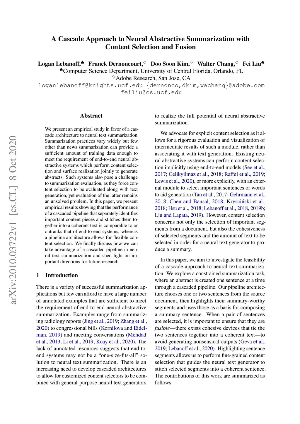 A Cascade Approach to Neural Abstractive Summarization with Content