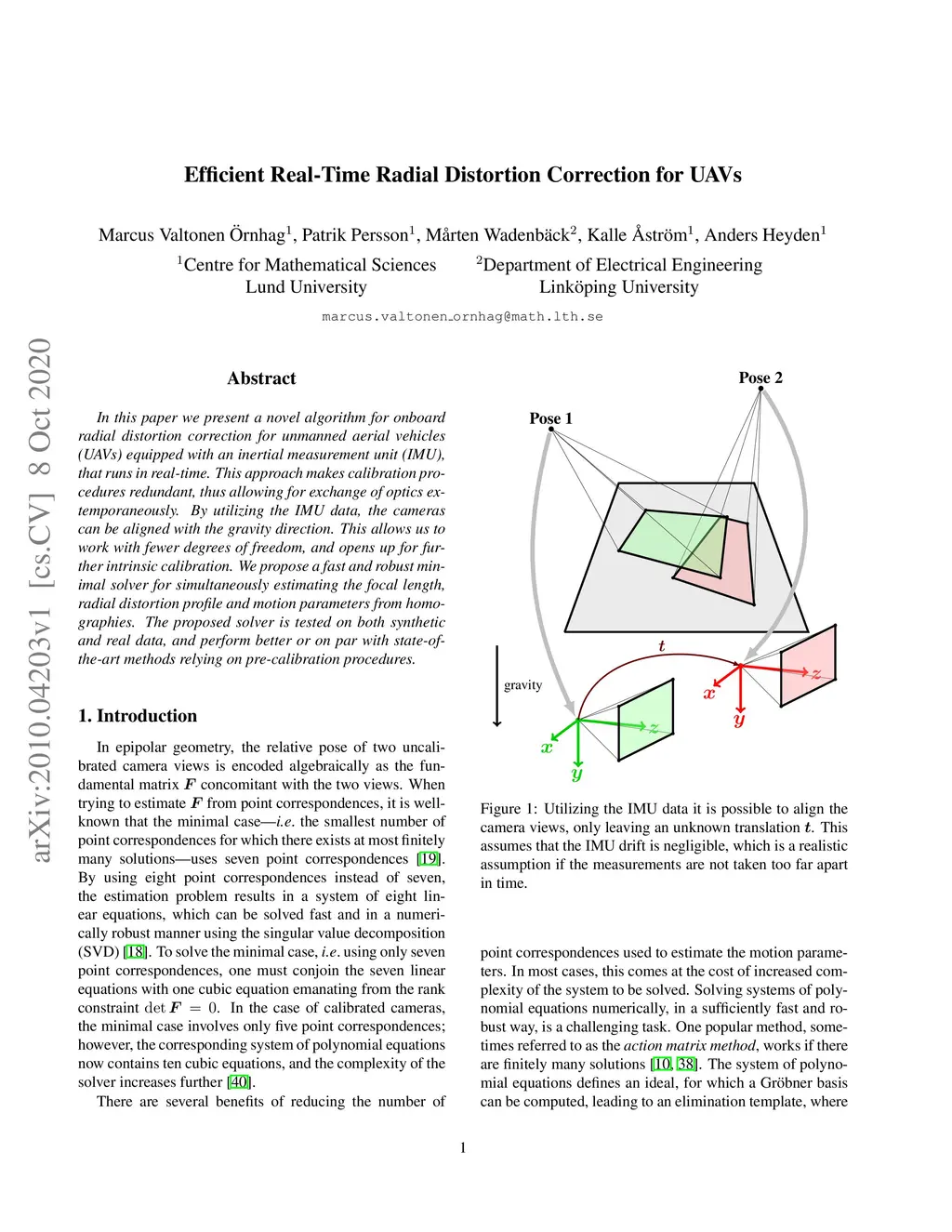 Efficient Real-Time Radial Distortion Correction for UAVs