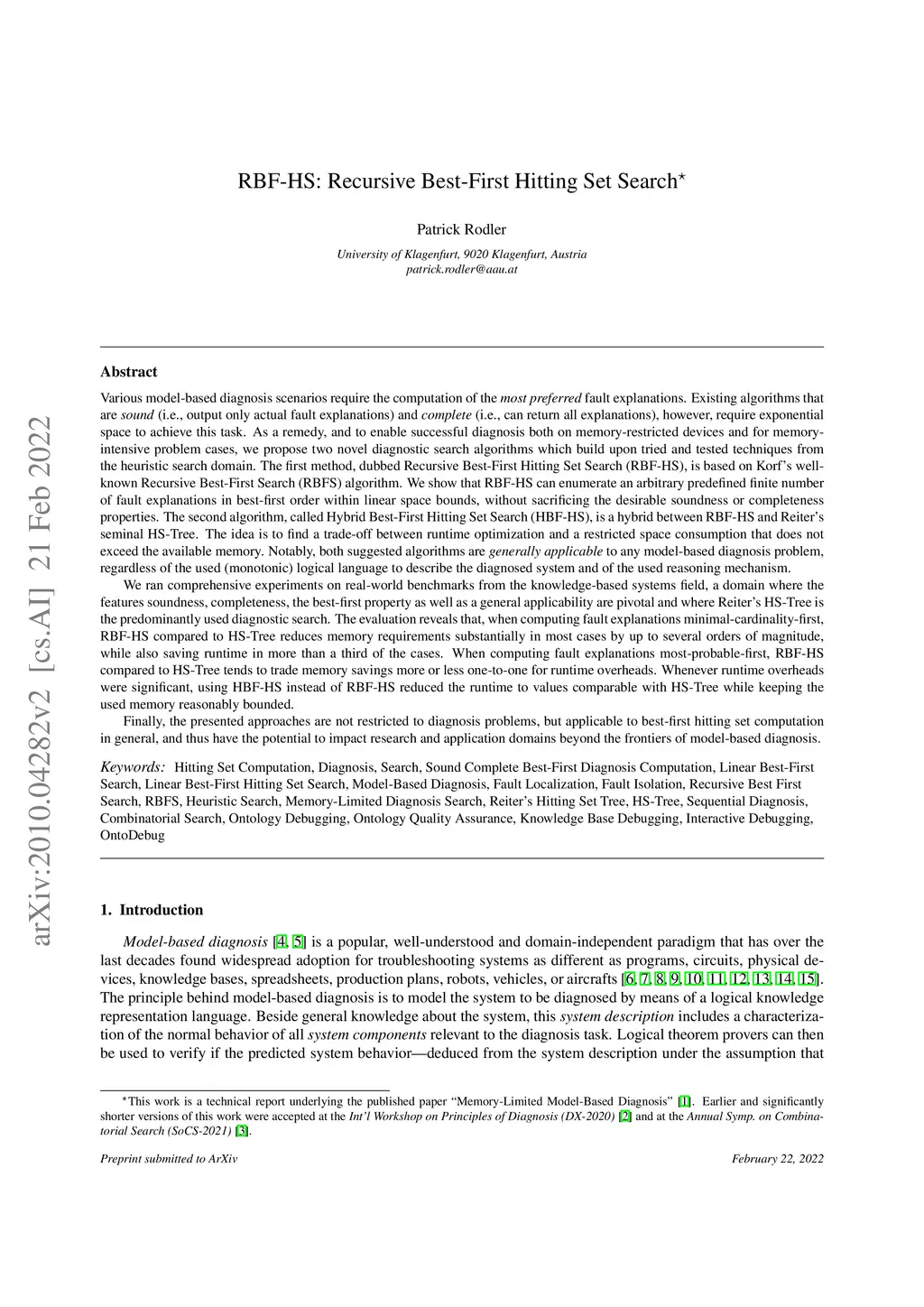 Various model-based diagnosis scenarios require the computation of most preferred fault explanations. Existing algorithms that are sound (i.e., output only actual fault explanations) and complete (i.e., can return all explanations), however, require exponential space to achieve this task. As a remedy, we propose two novel diagnostic search algorithms, called RBF-HS (Recursive Best-First Hitting Set Search) and HBF-HS (Hybrid Best-First Hitting Set Search), which build upon tried and tested techniques from the heuristic search domain. RBF-HS can enumerate an arbitrary predefined finite number of fault explanations in best-first order within linear space bounds, without sacrificing the desirable soundness or completeness properties. The idea of HBF-HS is to find a trade-off between runtime optimization and a restricted space consumption that does not exceed the available memory. In extensive experiments on real-world diagnosis cases we compared our approaches to Reiter's HS-Tree, a state-of-the-art method that gives the same theoretical guarantees and is as general(ly applicable) as the suggested algorithms. For the computation of minimum-cardinality fault explanations, we find that (1) RBF-HS reduces memory requirements substantially in most cases by up to several orders of magnitude, (2) in more than a third of the cases, both memory savings and runtime savings are achieved, and (3) given the runtime overhead is significant, using HBF-HS instead of RBF-HS reduces the runtime to values comparable with HS-Tree while keeping the used memory reasonably bounded. When computing most probable fault explanations, we observe that RBF-HS tends to trade memory savings more or less one-to-one for runtime overheads. Again, HBF-HS proves to be a reasonable remedy to cut down the runtime while complying with practicable memory bounds.