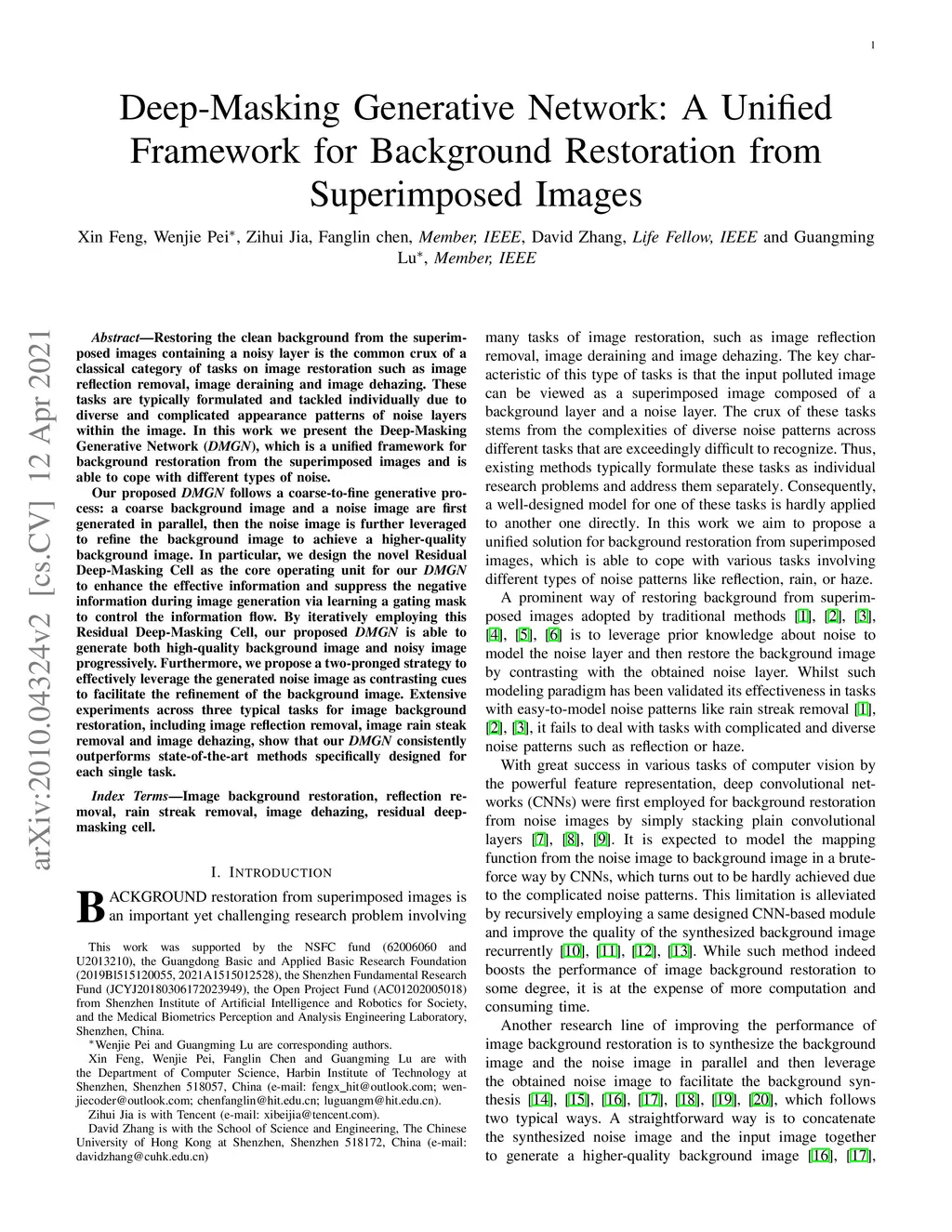 Deep-Masking Generative Network: A Unified Framework for Background