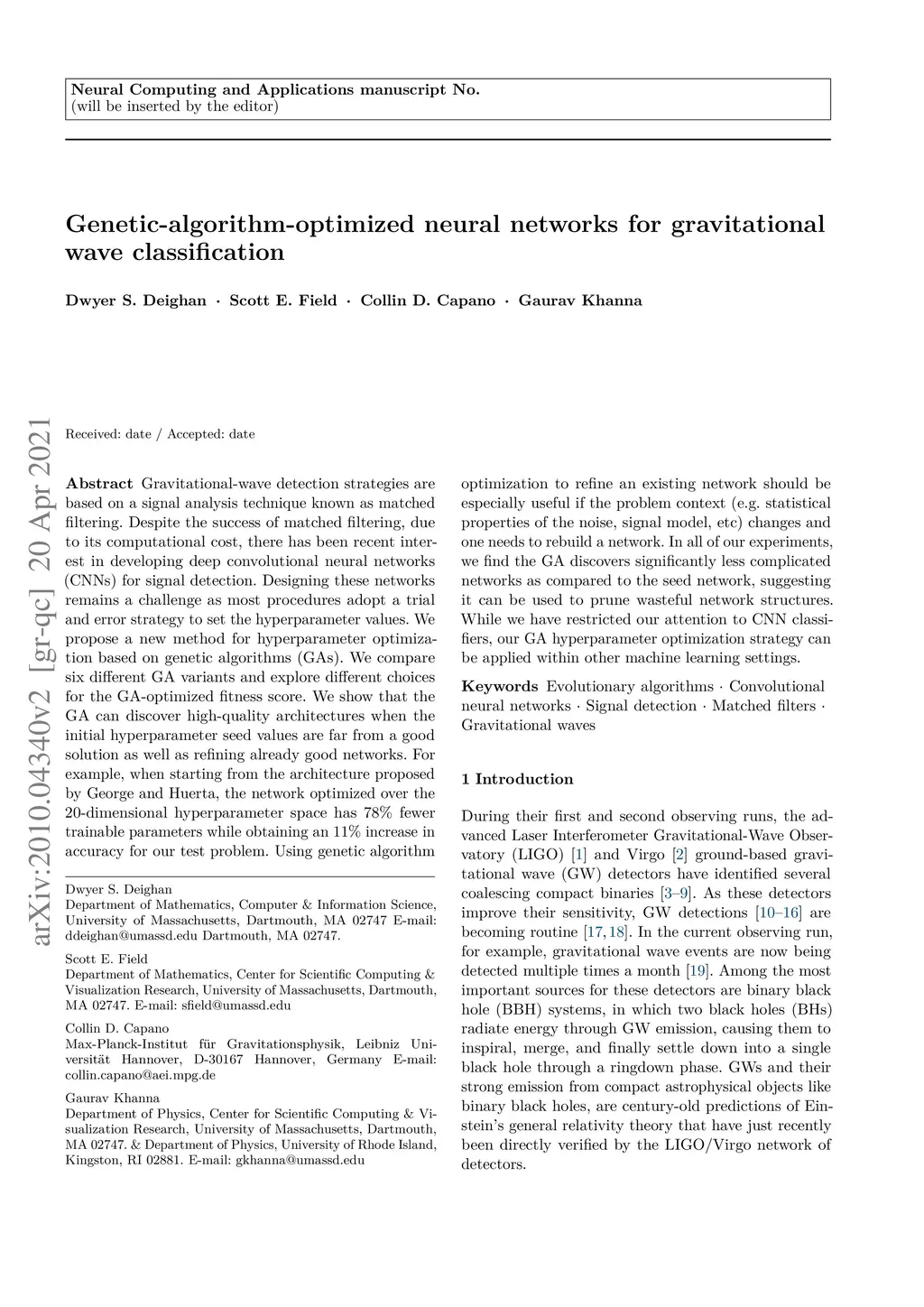 Genetic-algorithm-optimized neural networks for gravitational wave