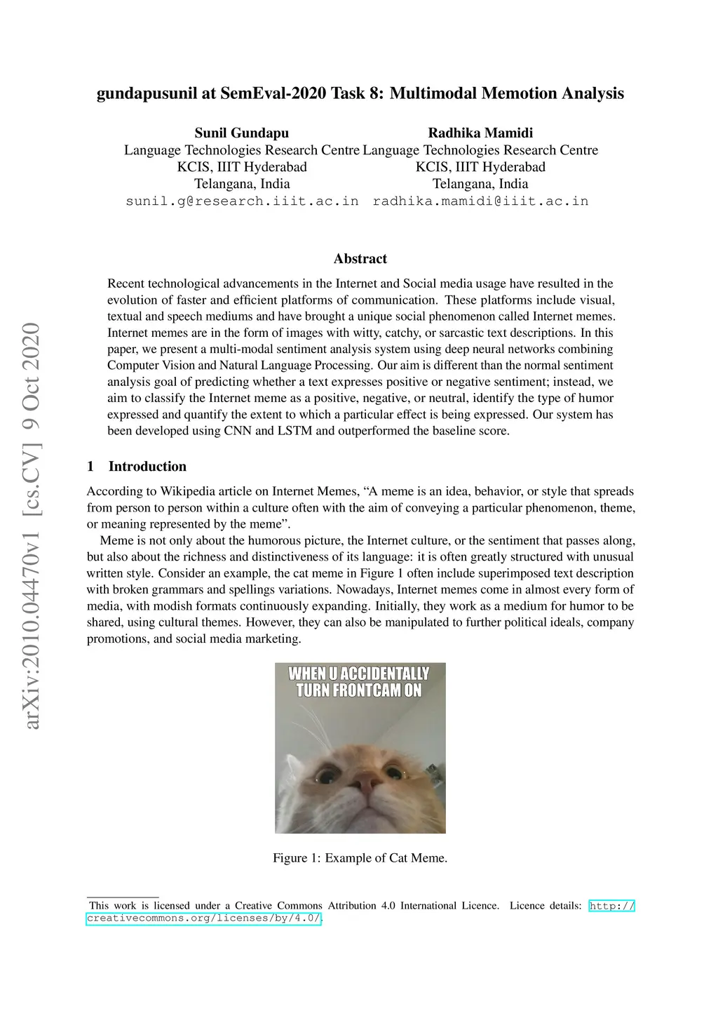 gundapusunil at SemEval-2020 Task 8: Multimodal Memotion Analysis