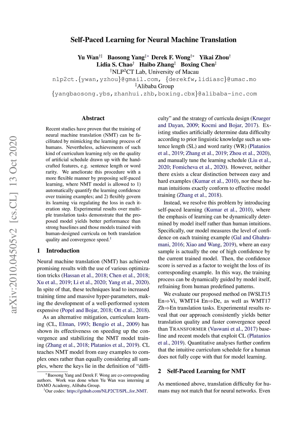 Self-Paced Learning for Neural Machine Translation